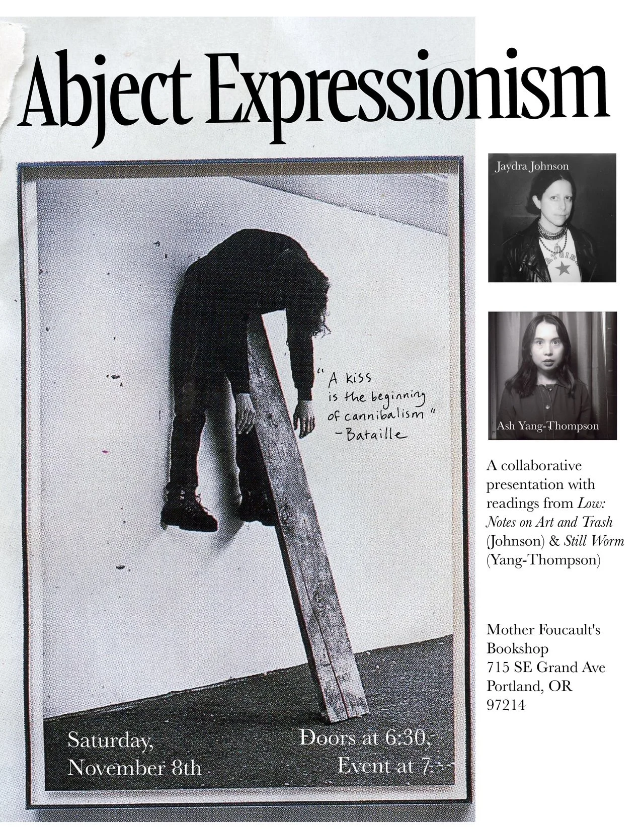 Ash is a scatalogical philosopher based in Portland, Oregon. In addition to Still Worm, she is the author of How to be the Worst Laziest Fattest Most Incontinent Piece-of-Shit in the world EVER (Bateau Press, 2021) and the chapbook Sky Mall (above/ground press, 2020), which was written collaboratively with Mikko Harvey.